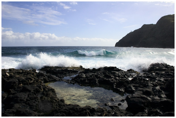 a view of the ocean from the top of Diamond Head (Leahi)--Honolulu's highest point